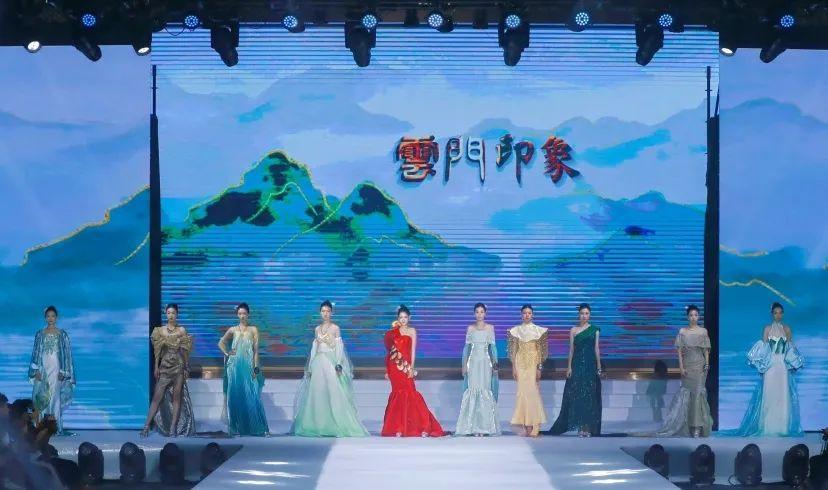 《云门印象》主题秀环节,地域文化的厚重底蕴与服饰文化的璀璨华彩交相辉映,潍坊风筝、青州文物以及云门文化等元素,通过形体艺术一一呈现。