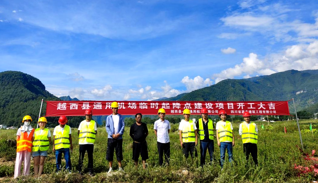 7月24日,越西县通用机场临时起降点建设项目在南箐镇团河村开工建设,镇村代表、项目施工单位负责人等参加开工仪式。
