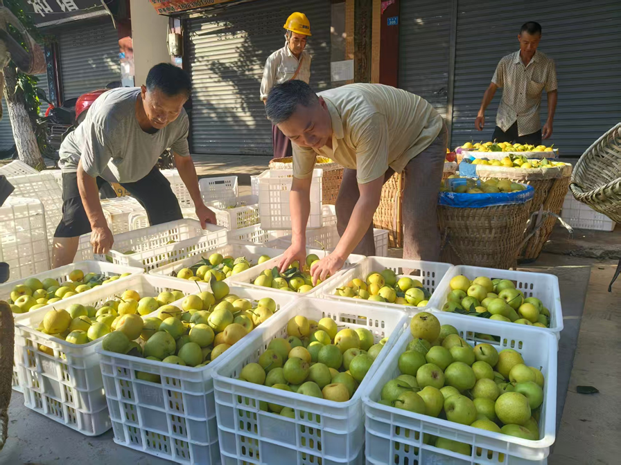 7月31日,广元市苍溪县云峰镇翠冠梨基地里一派忙碌景象,果农们正忙着采摘树上的水果,丰收的喜悦写在每个人脸上。采摘完成后,果农们带着这些翠冠梨来到云峰镇狮岭村党群服务中心外,将果实装进专用分装框,经过收购人员的计数、装车,这批水果顺利完成销售。