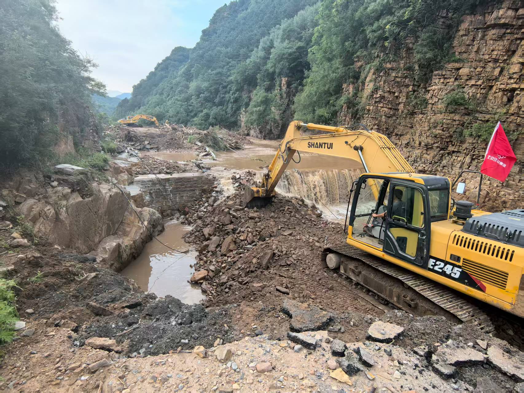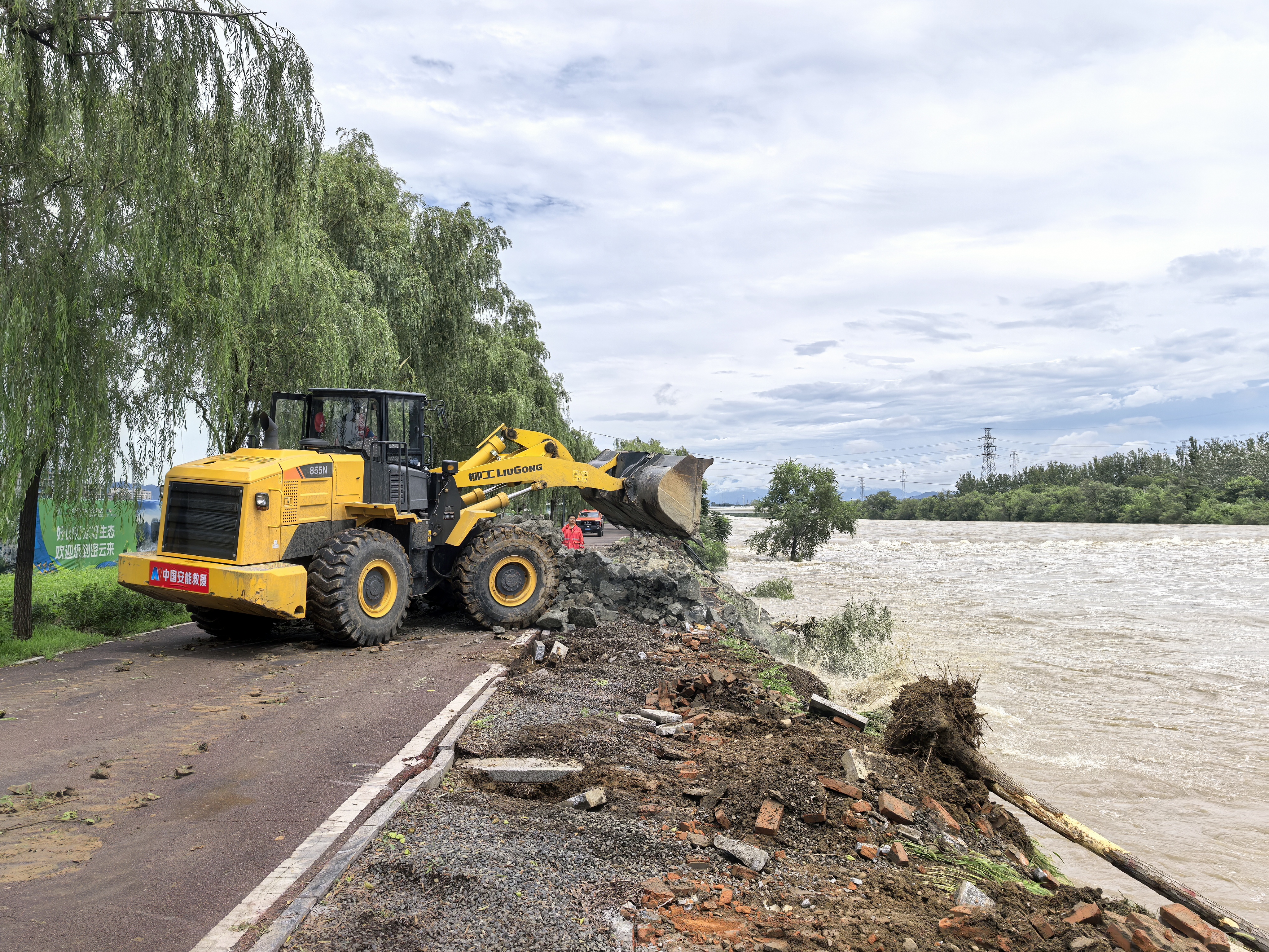 7月31日,抢险队伍又接到新的紧急任务。密云区大城子镇下栅子村因极端降雨导致交通瘫痪,11个自然村全部处于失联状态。中国安能二局迅速投入力量,负责抢通右侧约6公里的乡村损毁道路,全力恢复5个村庄的交通联系。