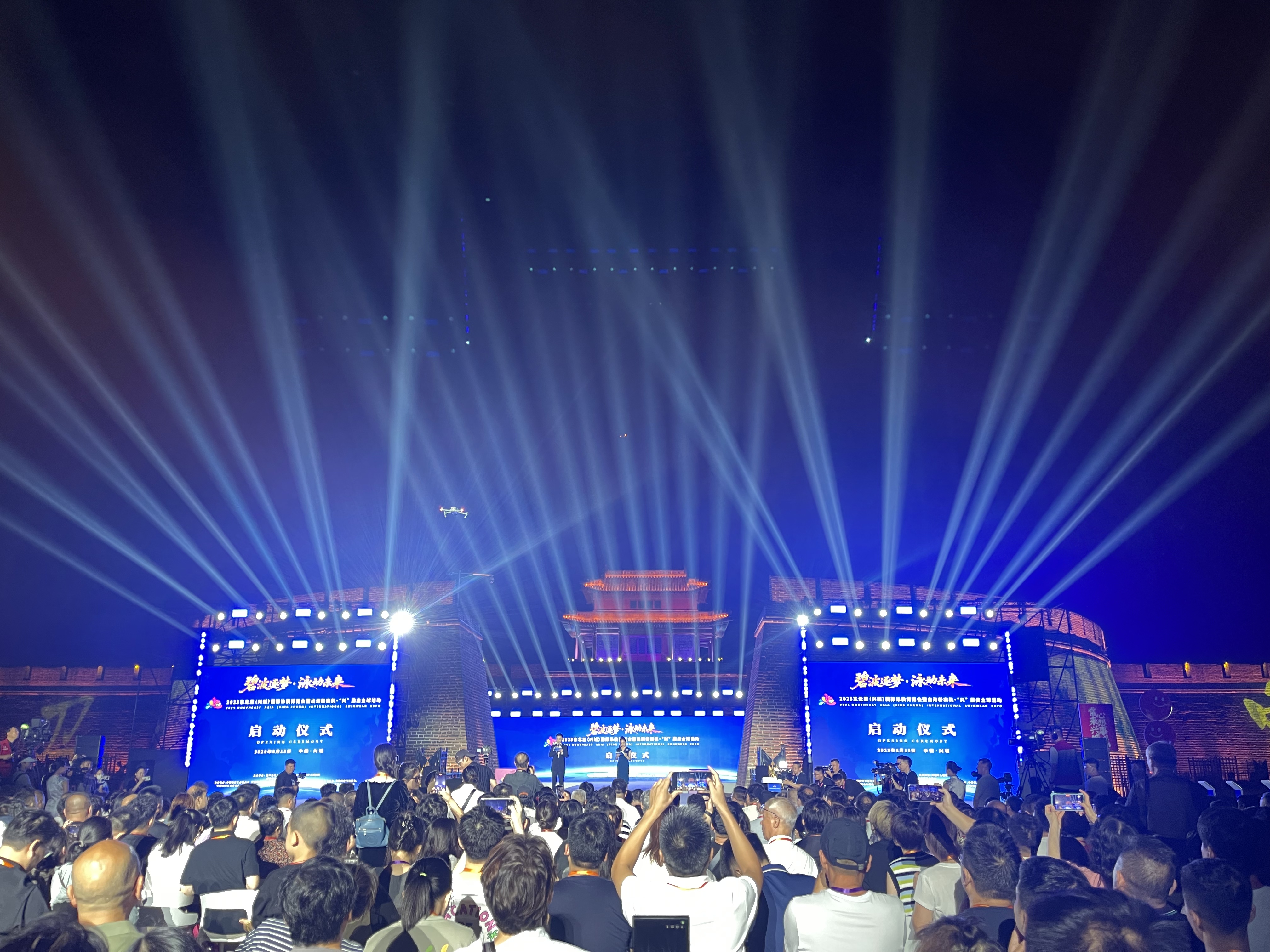 压轴登场的大型城墙光影秀,将明代古城墙化为巨幕,通过全息投影技术再现兴城泳装从家庭作坊到全球供应链之都的发展历程,当“好泳装・在兴城”的品牌口号在夜空亮起时,活动氛围达到高潮。