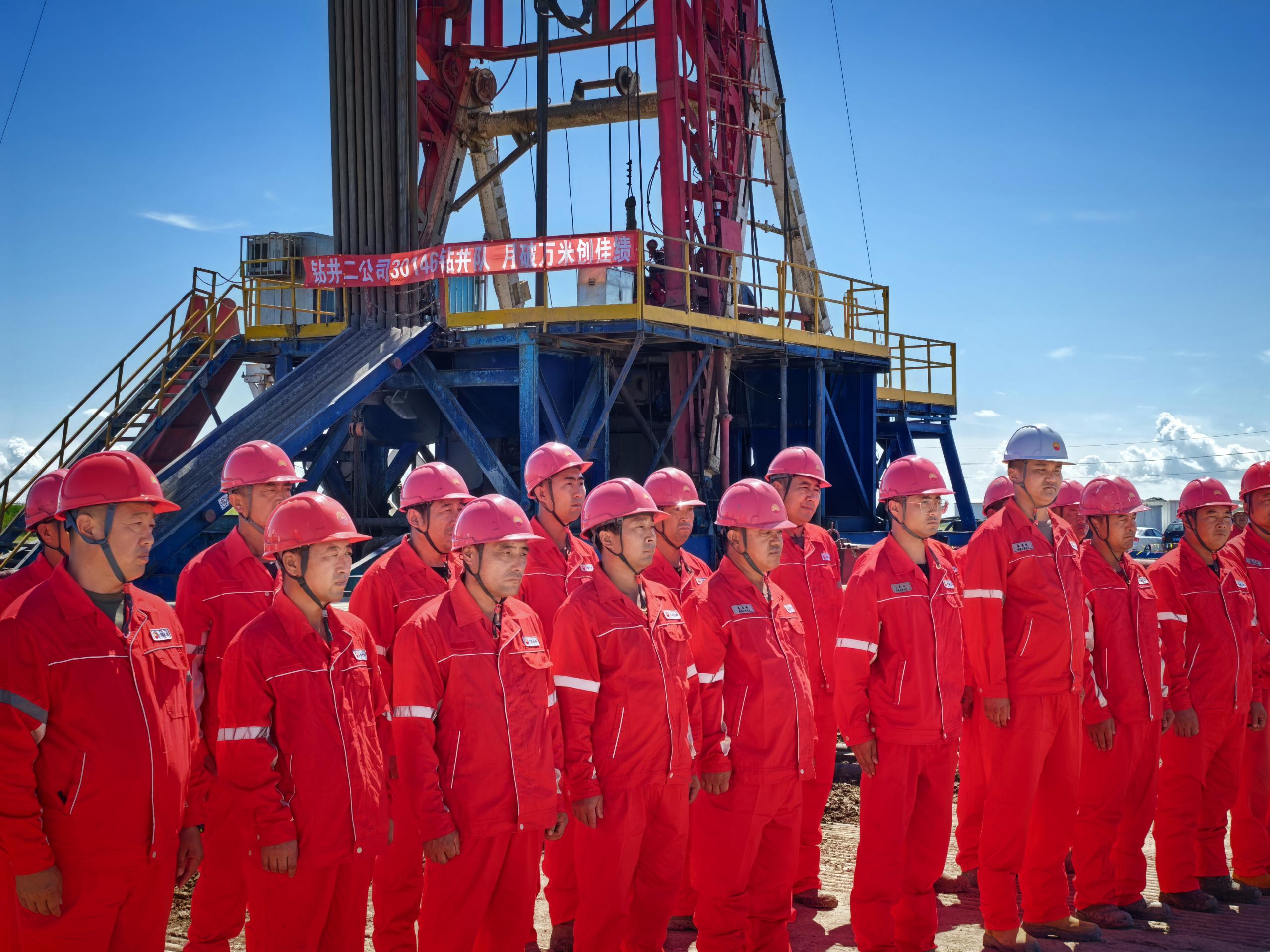 固井完成当日,公司经理郑晓庆携相关人员到现场祝贺:30146钻井队不仅擦亮了钻井二公司的“金字招牌”,更吹响了公司全面扭亏解困的翻身仗的“冲锋号”!你们以2.9天的建井周期刷新了自己的成绩,用实际行动诠释了“没有最好、只有更好”的追求,一举实现“月7开7完、进尺超万米”,把“尘封纪录”变成了30146钻井队的“新坐标”!你们“敢打敢拼”,面对地层不稳定、井下复杂的情况,压实井控责任,24小时轮班值守、连轴作战,从没人喊累、没人掉队;你们“敢闯敢干”,面对不同层位钻速波动的难题,扎根现场,反复对比数据、调整参数,多次优化钻井方案,用技术精进破解施工瓶颈。延续了铁人王进喜“有条件要上,没有条件创造条件也要上”的精神血脉。在保障安全、优质高效推进生产的同时,把“精益管理”和“成本控制”贯穿于每一个节点,既要进尺“冲得上”,也要效益“稳得住”,让“万米纪录”有更坚实的价值支撑。