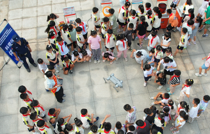 近日,四川省宜宾市叙州区人工智能全学段教育工作在北城实验小学启动。活动当天,北城实验小学校园化身“科技体验乐园”。市科技馆大篷车科普项目、消防科技装备、气象科技、机器狗展示,以及学校师生手工科技创作品等多元领域资源在此集结,为学生们带来一场沉浸式的科技盛宴。