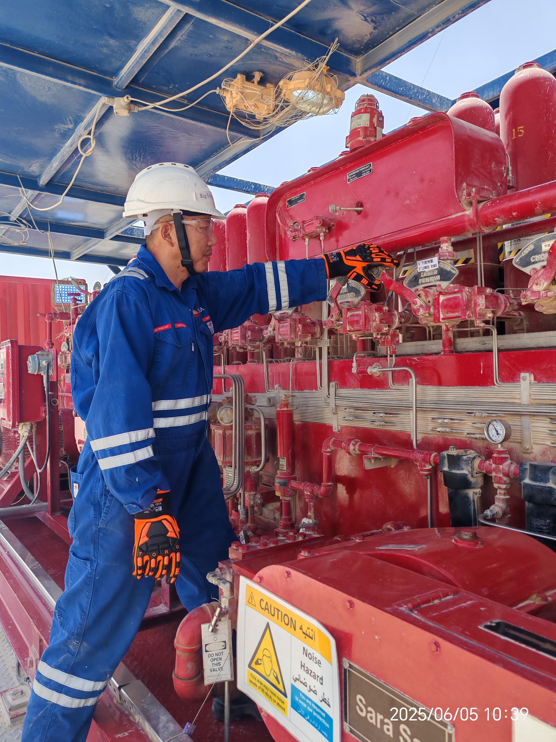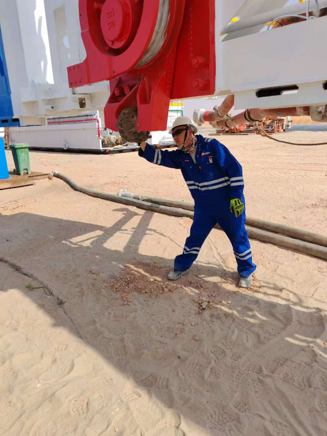 刚刚从新井场勘查井位回来的大庆钻探钻井一公司沙特项目DQ047钻井队工程师贺欢,一进老井场,就听到甲方监督SaladHaddad用沙哑的噪音朝他喊着,眼里充满期待。此时,一帮人正围着井口采油树讨论着什么。