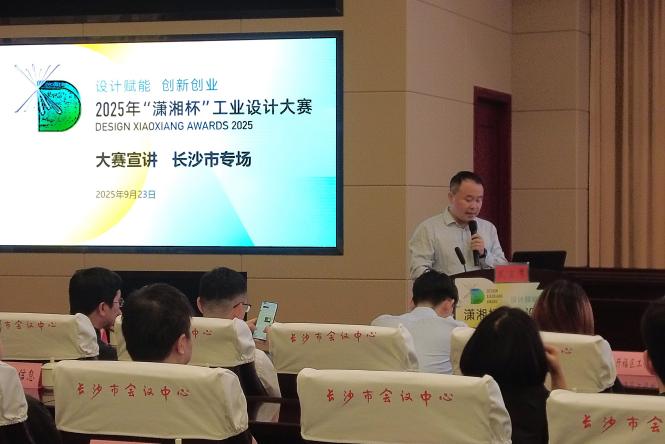 9月23日,2025年“潇湘杯”工业设计大赛(长沙市专场)宣讲活动在长沙举办。本次活动由长沙市工业和信息化局、湖南省工业设计协会联合主办,以“设计赋能创新创业”为主题,旨在进一步宣传推广大赛、扩大赛事影响力,吸引更多优秀主体参赛,持续提升大赛品牌价值,为长沙制造业高质量发展注入工业设计新动能。湖南省工业设计协会秘书长周宁主持活动。