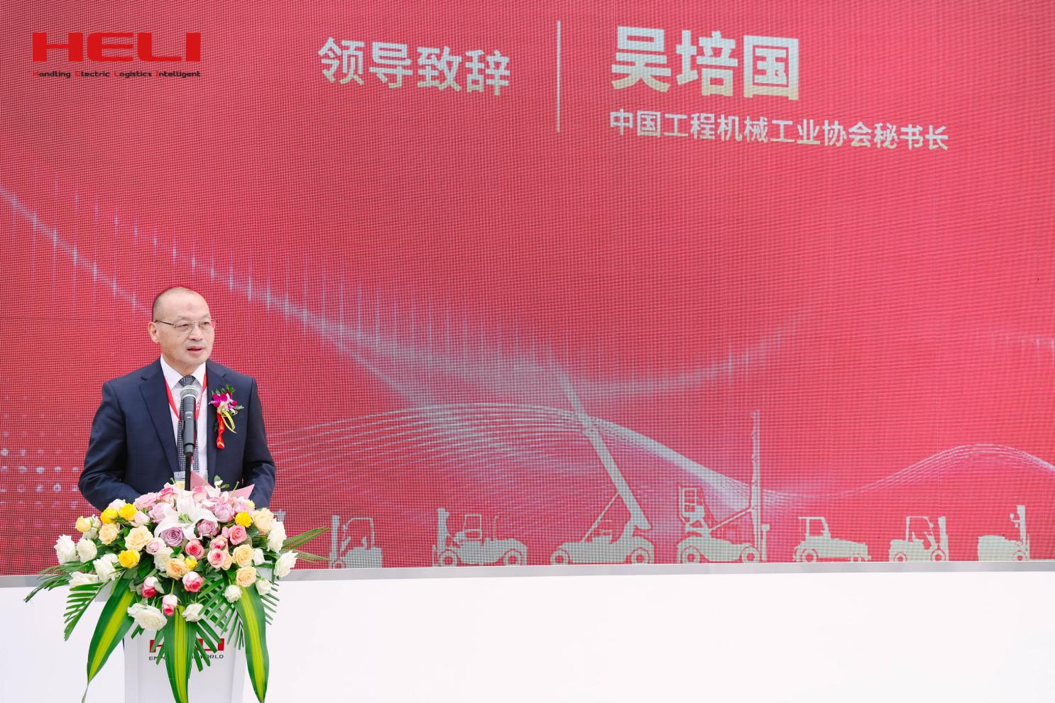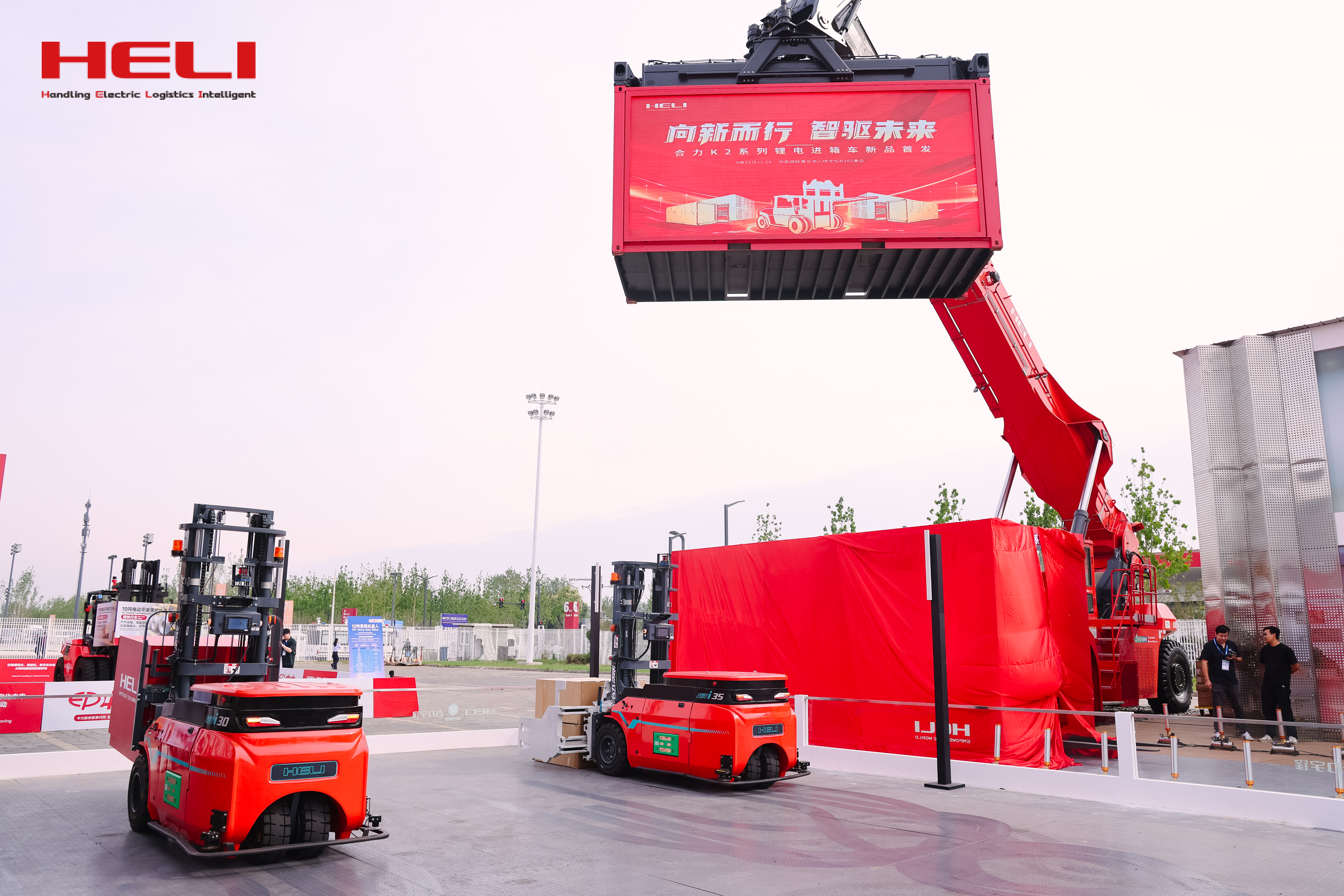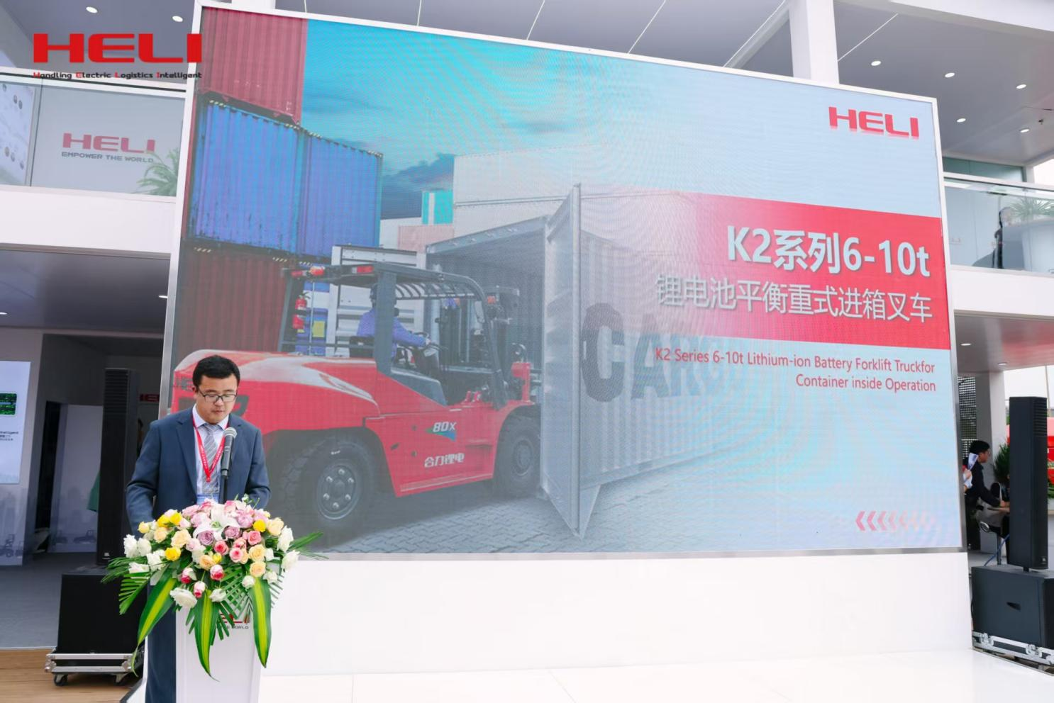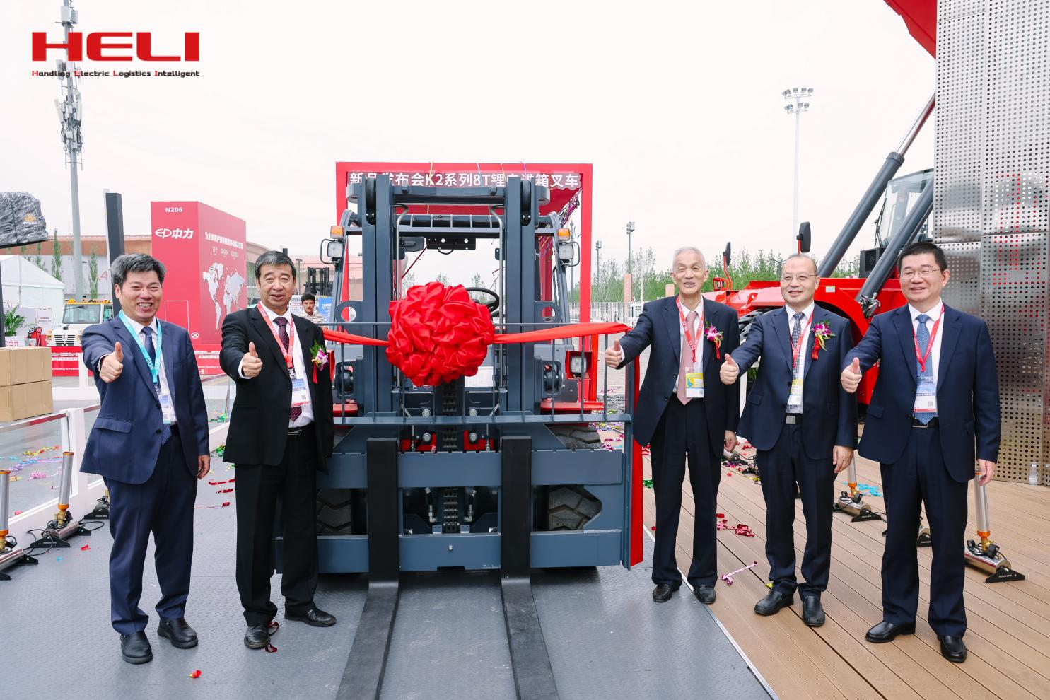 此次合力共展出新能源整机27台,智能立库及搬运设备7台,核心部件100余件。大会期间,合力洞察客户需求的细分产品——K2系列8吨锂电进箱车全球首发,发布会一经启动便成为本届展会全场人流量最大、科技含量最高的焦点展区之一,中国工程机械工业协会名誉会长兼特别顾问祁俊、中国工程机械工业协会秘书长吴培国、中国工程机械工业协会工业车辆分会会长黄越峰等重磅领导为新品揭幕。