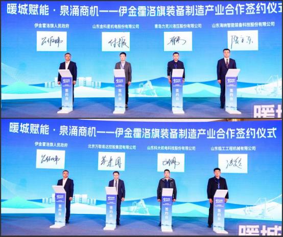 “暖城赋能泉涌商机”签约仪式将会议气氛推向顶点。伊旗政府与金科星、力克川液压、海纳科技、万联易达、科大机电、山东临工等企业集中签约,签约内容涵盖智能采掘装备供应、矿山运维服务、新能源装备应用、物流配套服务等多个维度,包含技术合作、服务延伸、本地化配套的系统化解决方案。