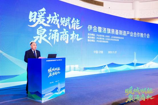 11月27日,由山东省装备制造业协会与伊金霍洛旗人民政府联合主办、以“暖城赋能泉涌商机”为主题的伊金霍洛旗与山东装备制造产业合作推介会在济南举行。伊旗旗委常委、宣传部部长郝伟,旗人民政府副旗长公维炜,工信和能源等部门负责人,伊旗重点企业代表和山东省装备制造业协会矿山机电分会会长魏成会、山东省重点矿山机电企业负责人160余人齐聚一堂,共商产业协作大计。会议由山东省装备制造业协会执行会长、山东科大机电科技股份有限公司董事长包继华主持。