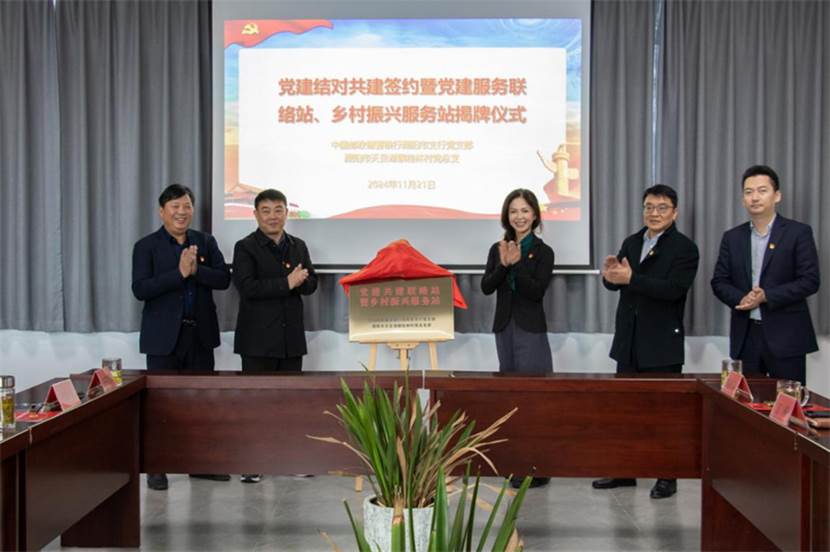 2024年11月,邮储银行溧阳市支行与天目湖镇桂林村委正式签署党建共建协议,将桂林村委打造成集金融服务、政策传达、便民对接于一体的“邮爱驿站+普惠”的乡村振兴服务站。