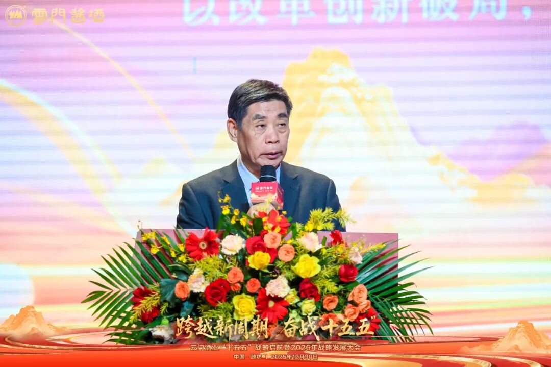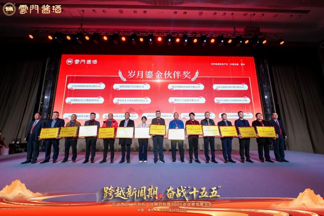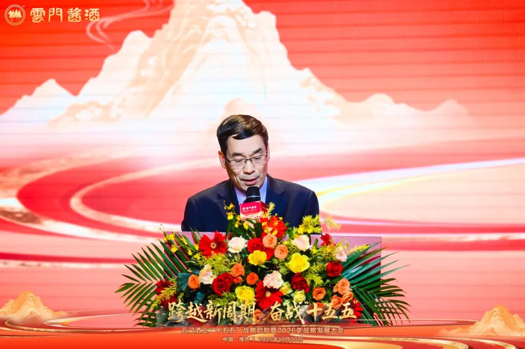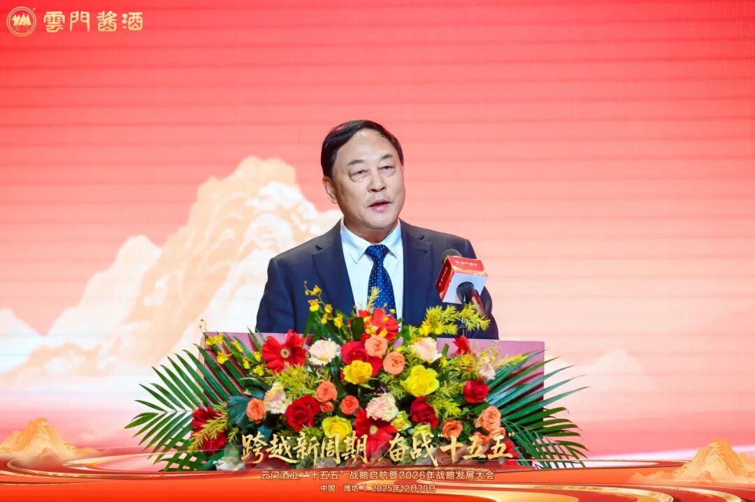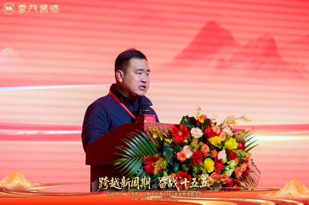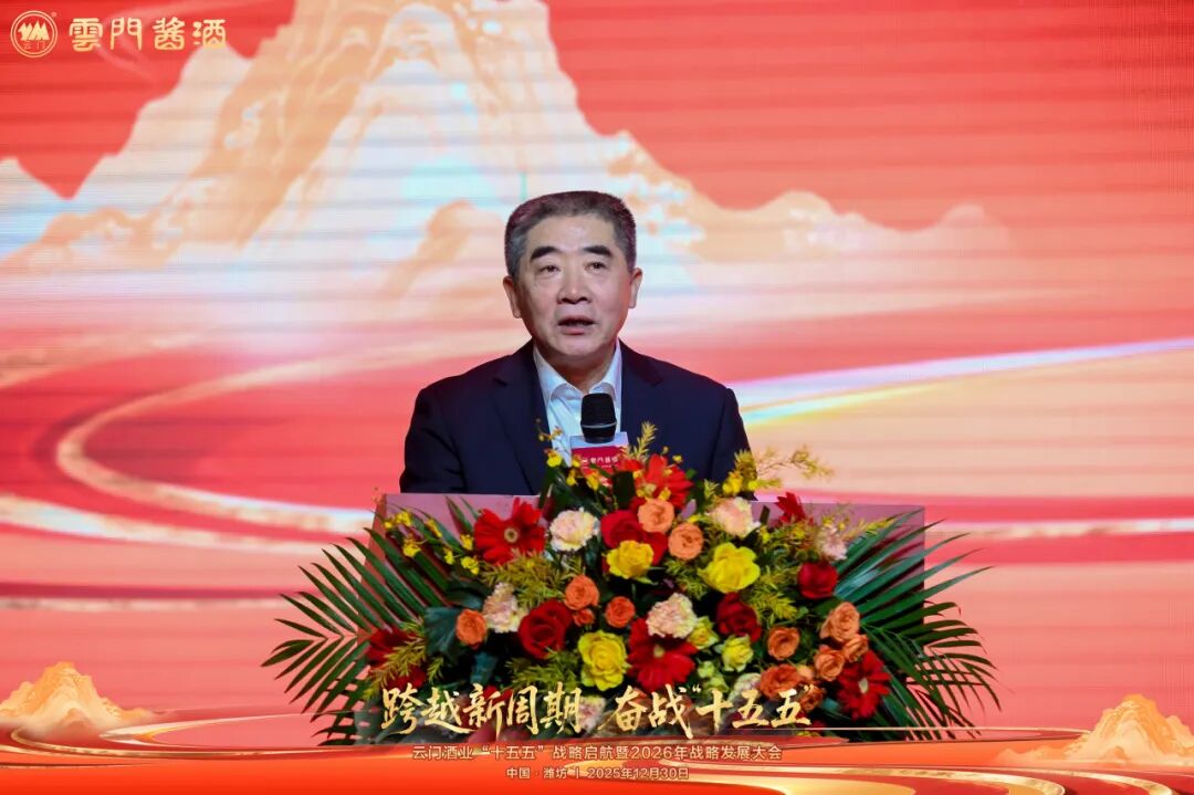 2025年12月30日,以“跨越新周期 奋战非中文符号‘“十五五”’'”为主题的云门酒业“十五五”战略启航暨2026年战略发展大会在潍坊隆重召开。潍坊市、青州市领导,以及来自全国各地的经销商、行业协会、核心消费者、社会各界代表共四百余人出席大会,共同见证云门酒业从 “十四五” 圆满收官到 “十五五” 恢弘启幕的历史性跨越。