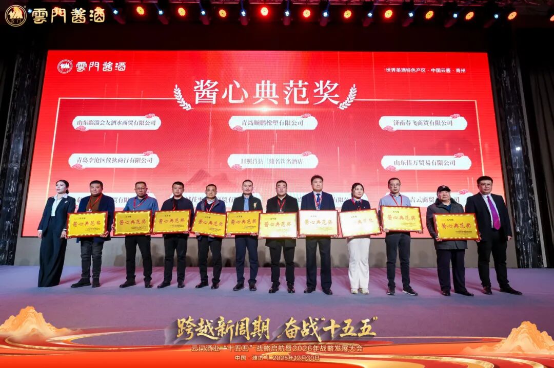 云门酒业领导为2025年度表现突出的合作伙伴颁发了“战略同盟奖”“酱心典范奖”“岁月鎏金伙伴奖”“酒韵领航奖”四项大奖,以感谢在各个领域为云门酒业发展做出积极贡献的合作伙伴。