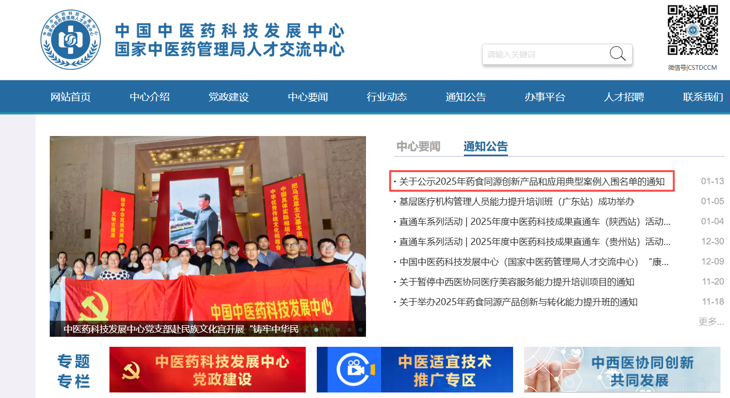 中国中医药科技发展中心(国家中医药管理局人才交流中心)主要承担国家中医药科技成果转化、科技项目管理、人才政策研究及培训等职能。为深入落实《“健康中国2030”规划纲要》与《国务院办公厅关于提升中药质量促进中医药产业高质量发展的意见》,推动中医药科技创新与产业深度融合,促进药食同源领域高质量发展,该中心于2025年3月启动本次案例征集活动。经过单位申报、形式审查、专家初审、终审答辩与综合评审等多轮环节,秉承公平、公正、公开的原则,最终在全国范围内评选出30个在创新性、实用性、示范性等方面表现突出的典型案例。