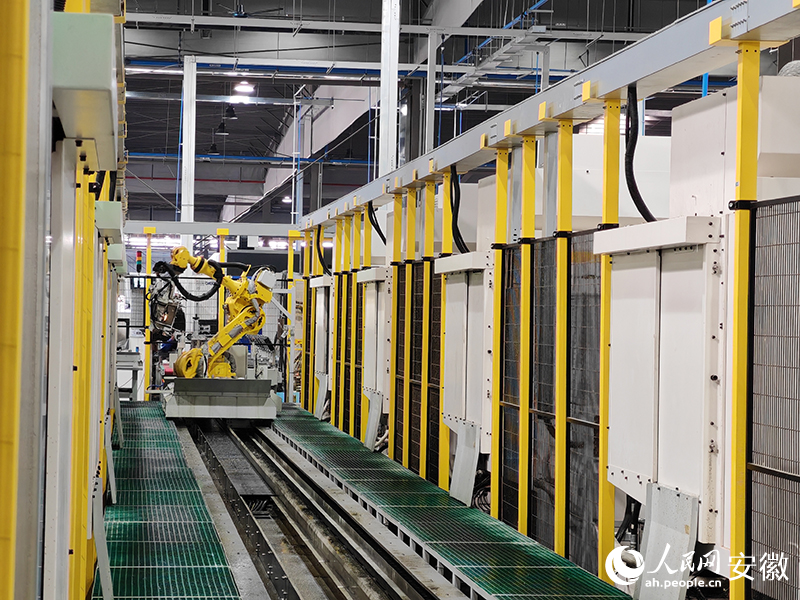 安徽鸿图精密工厂里正在精加工操作的机械臂。