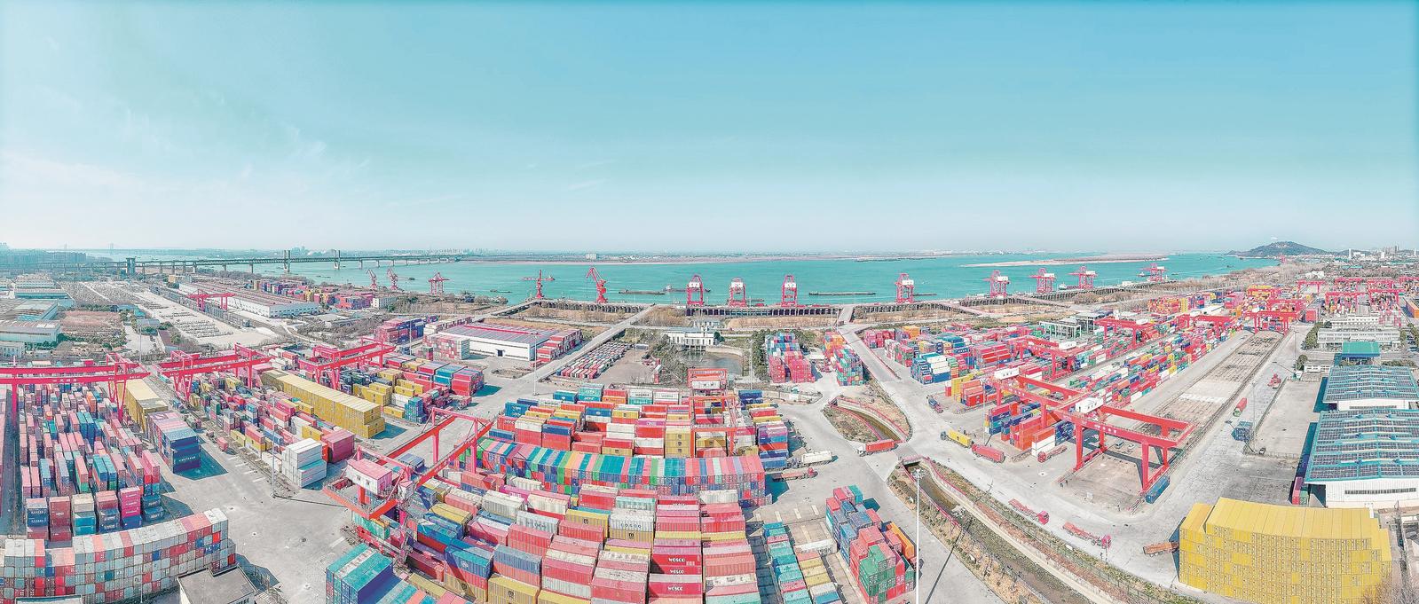 2月18日,芜湖港朱家桥港区国际集装箱码头车来船往,货轮在泊位上有序装卸,一派繁忙景象。