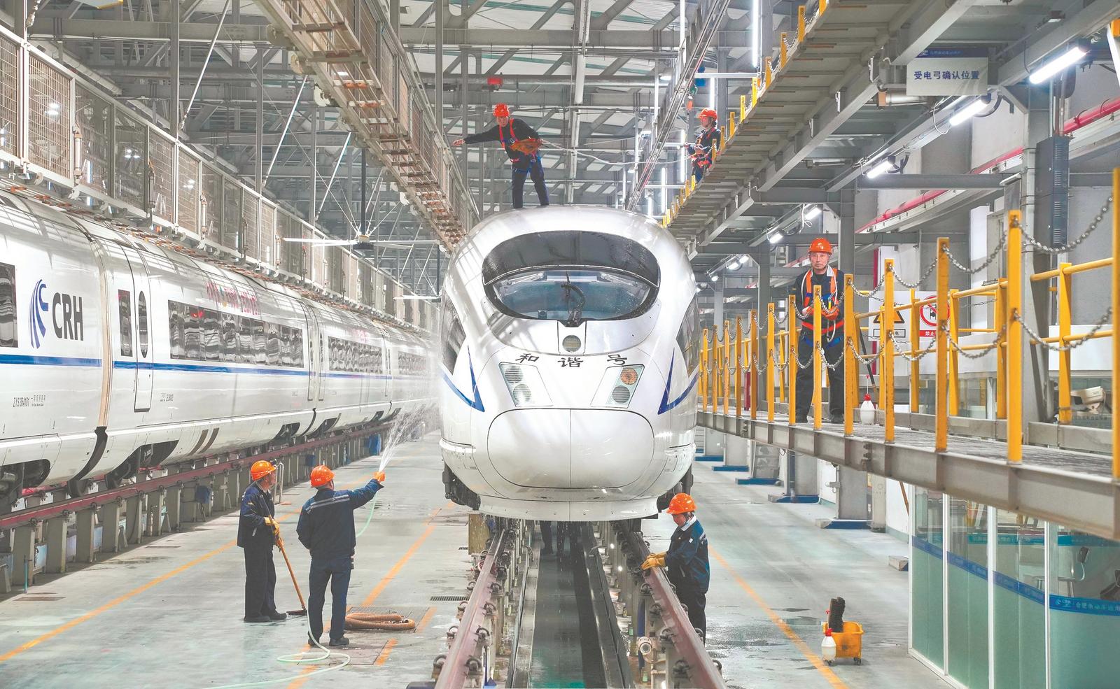 合肥南动车运用所提前进入春运状态,对动车进行“体检”,确保安全运行