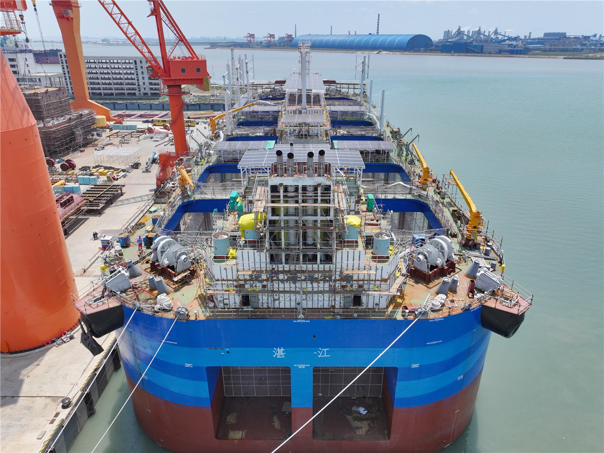 动力定位、平台监测、饲料储存与投喂……日前,记者来到江苏省南通市,在位于通州湾高端装备临港产业园的钦实佳美能源科技(南通)有限公司码头,一艘名为“湛江湾1号”的智能渔业养殖平台停在泊位上,红白蓝相间的流线型船身在阳光的照耀下更显高大