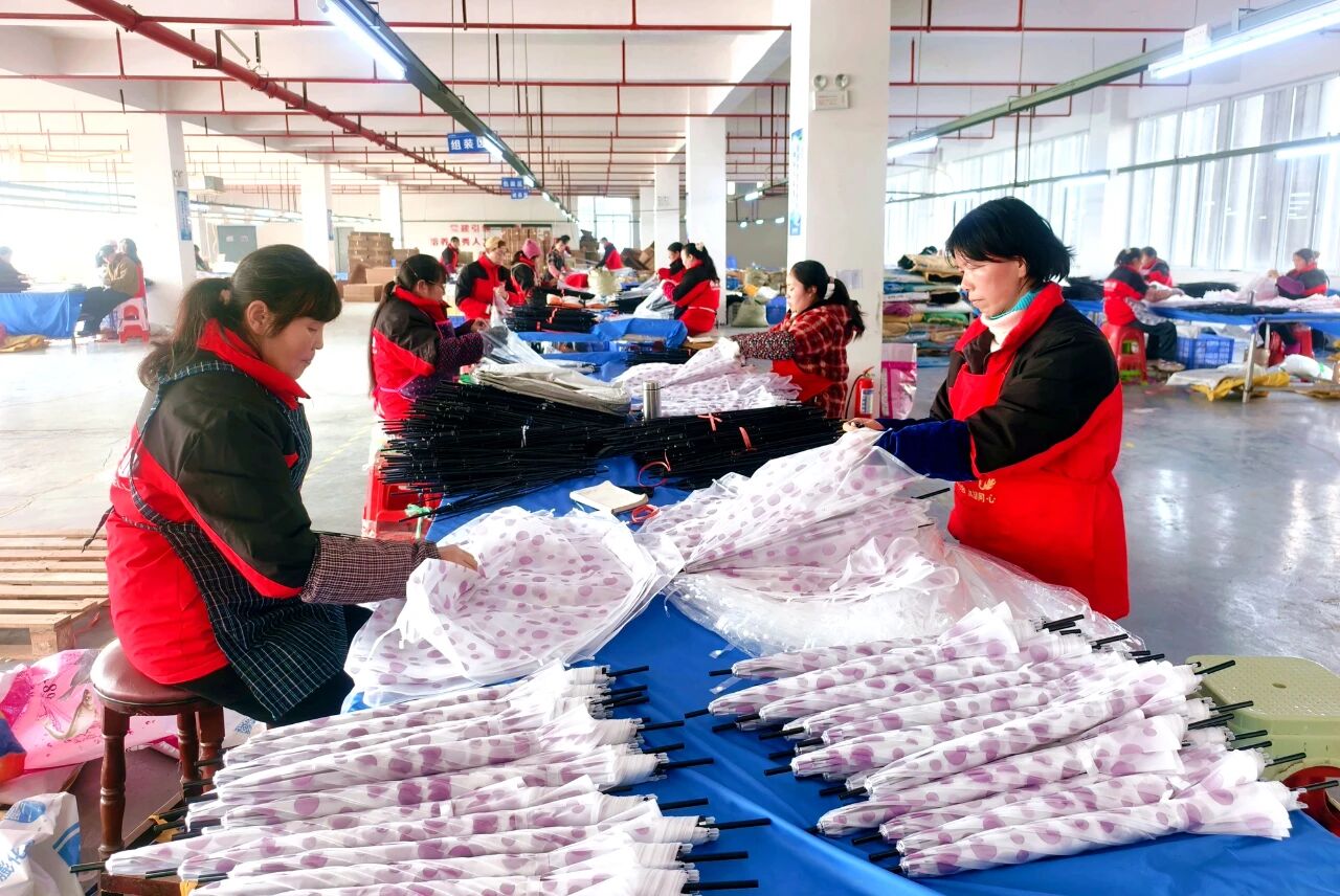 如今,悦鹏伞业编织的这张产业与民生之网越织越密。从园区到乡镇,从车间到家庭,一把把雨伞的诞生过程,正是千万个家庭生计改善、希望升腾的过程。这把“伞”,为万家撑起了遮风挡雨的“幸福伞”,也为乡村振兴撑起了一片充满活力的“艳阳天”。(田金凤 杨韵可)
