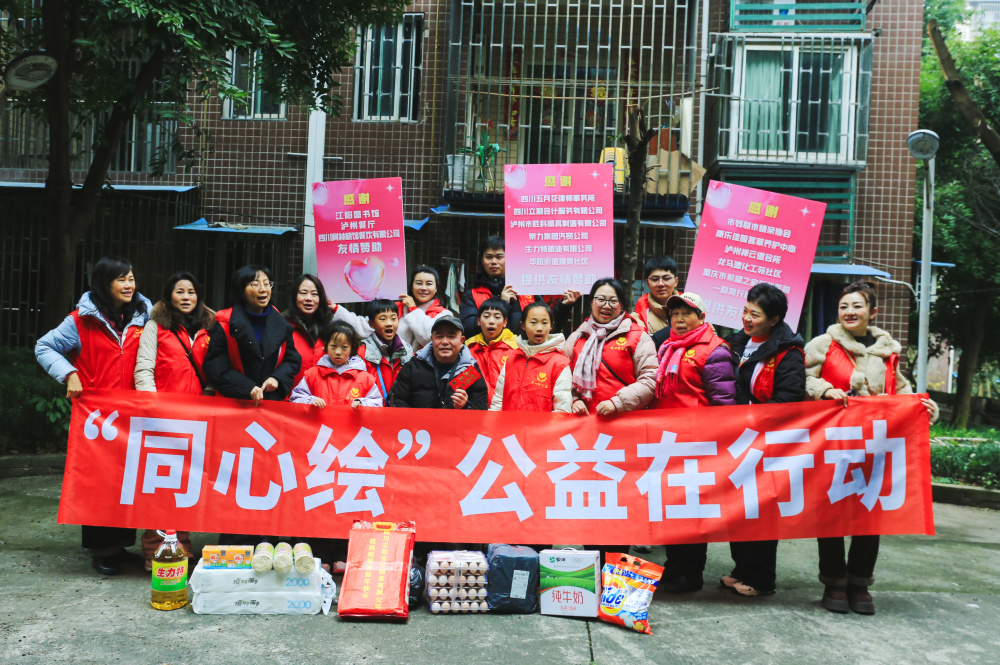 活动尾声,一米长的爱心蛋糕亮相,四川立勤会计服务公司通过视频送上新春祝福,联合主办方代表共同切分蛋糕。此次活动得到华阳街道瑞景社区、荣力集团等单位及个人的大力支持。