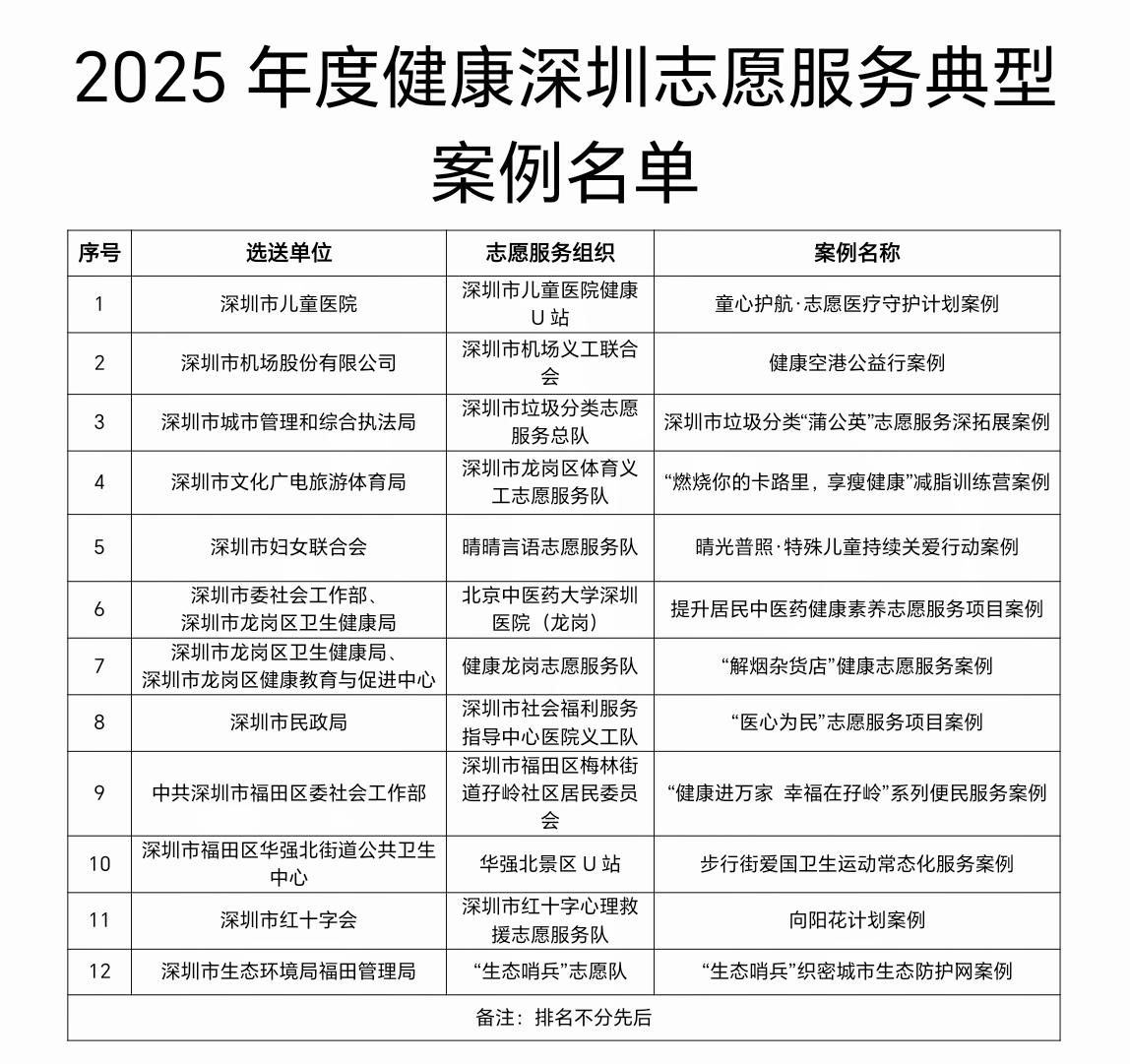 为强化典型引领,推广经验交流,此次交流会选出2025年健康深圳志愿服务12个典型案例中的6家单位进行了经验分享,包括健康龙岗志愿服务队、深圳市福田区华强北街道志愿者联合会、深圳市福田区梅林街道孖岭社区居民委员会、深圳市儿童医院健康U站、深圳市龙岗区体育义工志愿服务队、深圳市社会福利服务指导中心医院义工队6个机构,通过真实案例展示了健康志愿服务在区、街道、社区、医院等多层面的创新实践和显著成效,尤其是在志愿者队伍管理、服务项目内容、服务成效等方面进行了深入地交流,分享了可复制、可推广的做法。