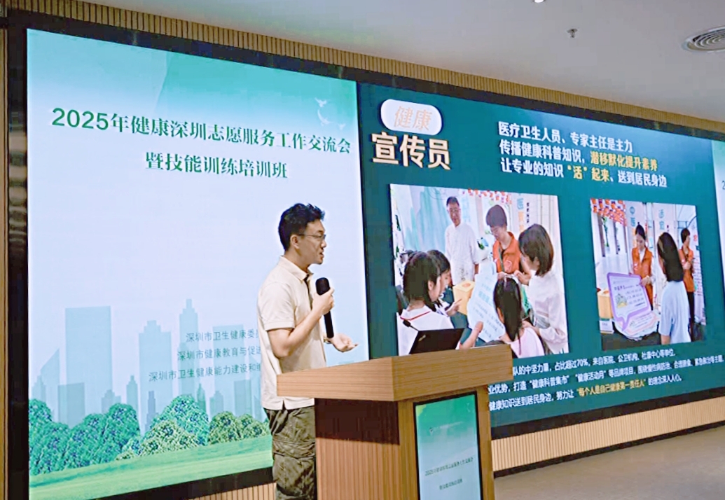 为完善健康深圳志愿服务,助力健康深圳建设,9月25日,深圳市卫生健康能力建设和继续教育中心,深圳市爱卫办组织召开了2025年健康深圳志愿服务工作交流培训会。来自深圳市爱卫会各成员单位、各区爱卫办以及各医疗单位的健康志愿服务工作负责同志、骨干成员近百人参加了本次交流会。