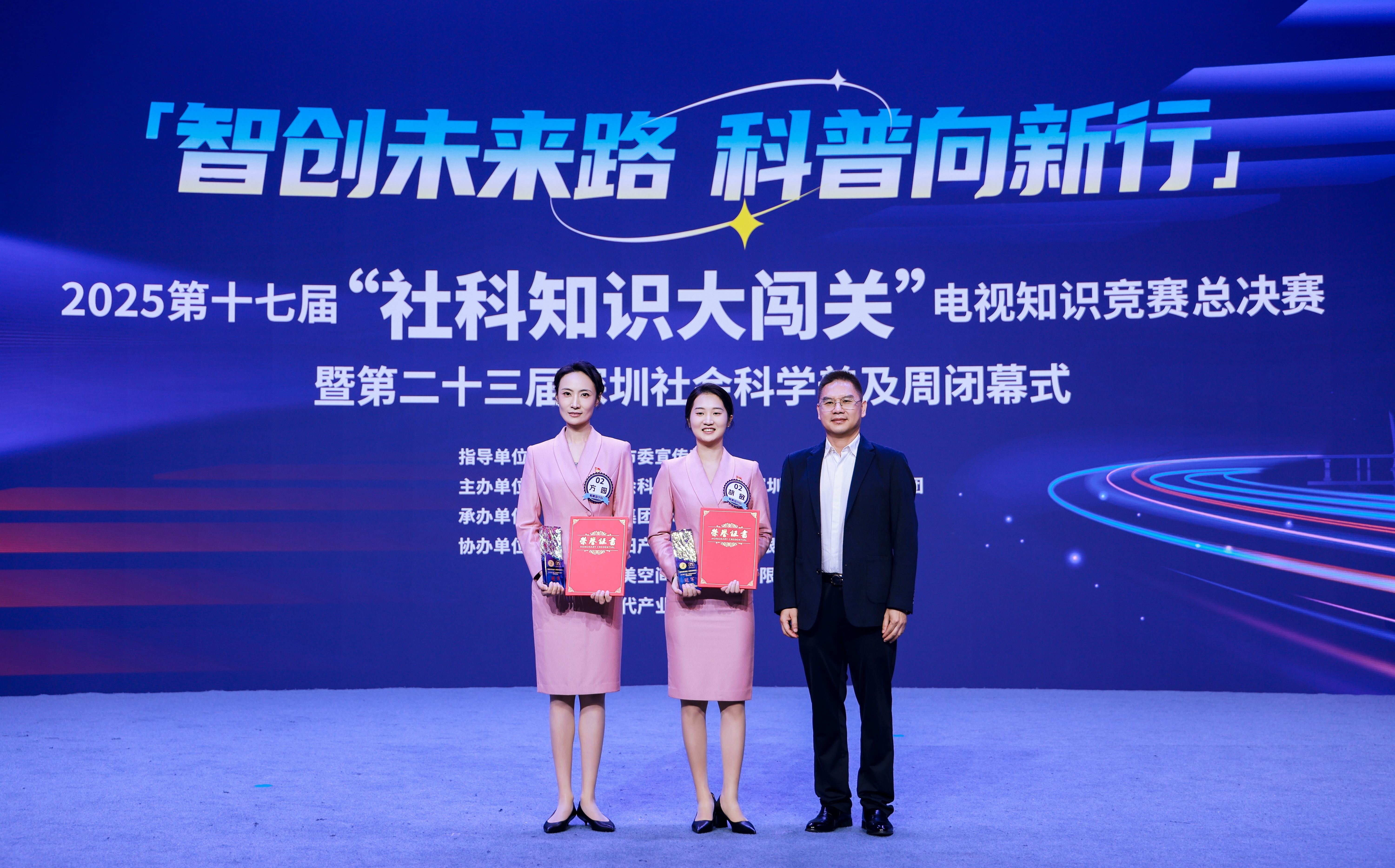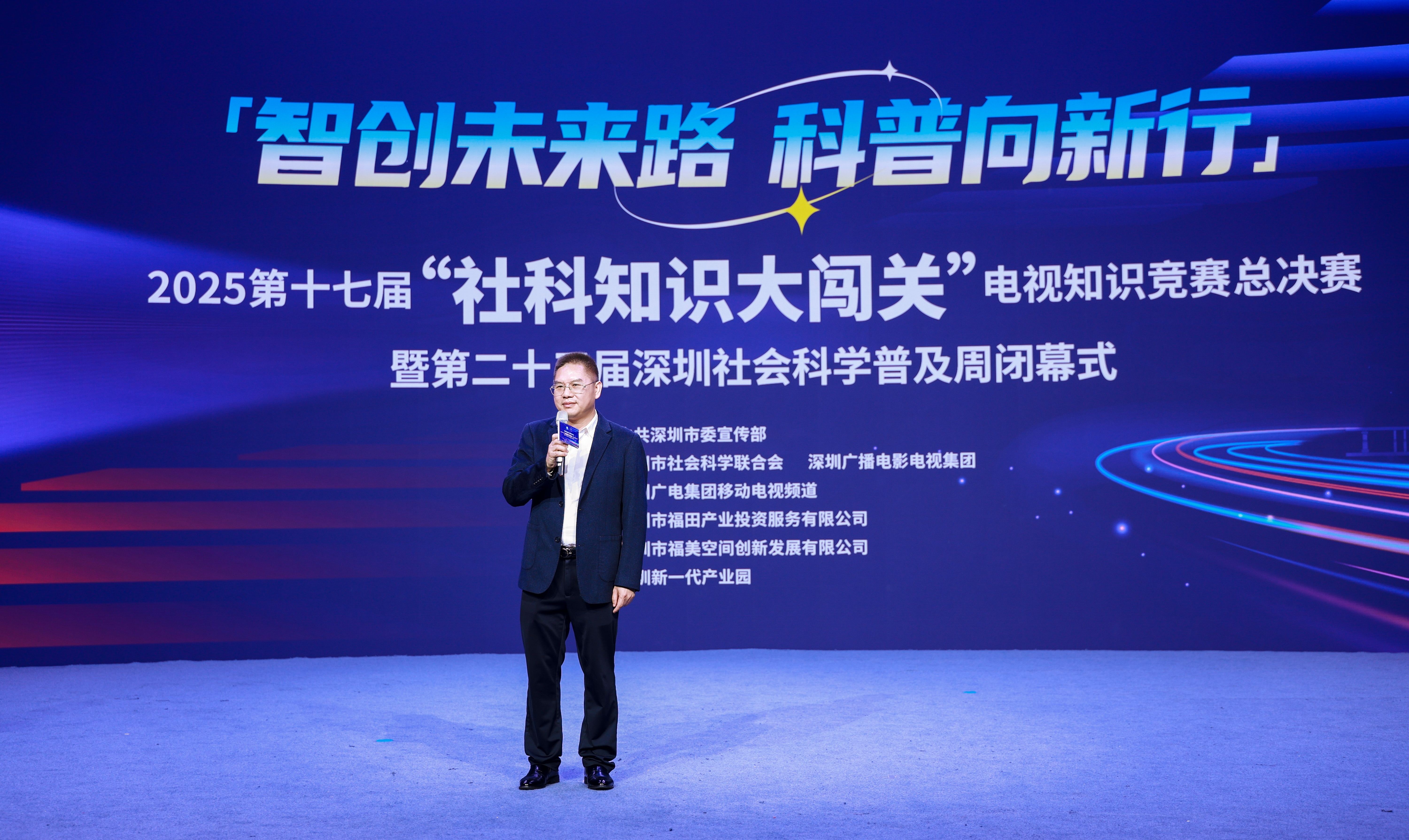 11月14日下午,以“智创未来路科普向新行”为主题的第十七届“社科知识大闯关”电视知识竞赛总决赛暨第二十三届深圳社会科学普及周(2025)闭幕式在深圳广电集团800平米演播厅举行。本次活动在中共深圳市委宣传部指导下,由深圳市社会科学联合会、深圳广播电影电视集团联合主办,深圳广电集团移动电视频道承办。深圳市社科院(社科联)党组成员、副院长、专职副主席范伟军等相关单位领导出席活动。