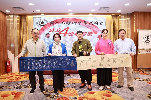 早春三月,万象更新。3月4日,香港“开心太极坊中华武术会”庆祝成立四周年盛会在观塘凤苑酒楼举行。来自香港文体界、武术界众多人士出席,现场更有各门各派武术表演,抽奖助兴等,节目精彩纷呈,场面热闹。