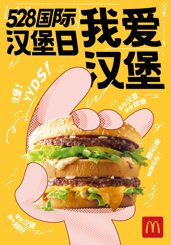 麦当劳中国宣布将于5月26-28日首次举行“528国际汉堡日”庆祝活动,以“我爱汉堡”为主题,邀请喜爱汉堡的顾客一同欢庆。在为期3天的活动中,顾客可在线参与“你爱汉堡有几分”的汉堡知识测试,领取专属的汉堡真爱粉电子凭证,还有机会赢取汉堡产品优惠券、平分“吃堡自由金”。