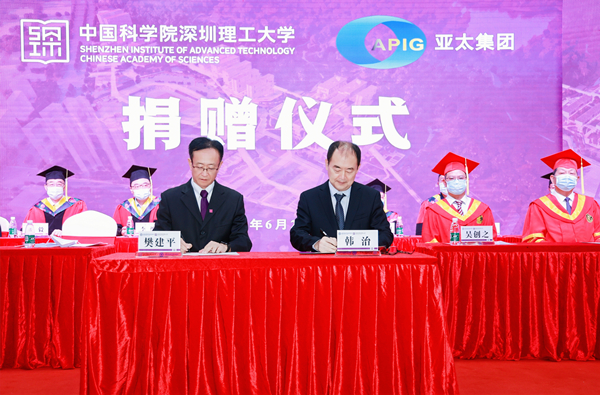 中国科学院深圳理工大学(筹)捐赠仪式在中国科学院深圳先进技术研究院举行。深圳亚太控股集团有限公司向中科院深理工捐赠人民币500万元,用以支持中科院深理工人才培养、科学研究、师资建设等。