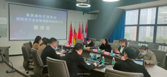 为贯彻落实广西壮族自治区2023年招商引资“早春行动”及来宾市经济工作会议精神,近日广西来宾市工业园区主动出击,组织多个招商小分队外出招商考察和洽谈项目。2月2日,来宾市工业园区党工委副书记黄维春率数字经济产业集群指挥部招商小分队赴南宁对接广西桂贸天下企业管理服务有限公司,洽谈项目合作具体事宜。来宾市商务局副局长陈波参加洽谈。