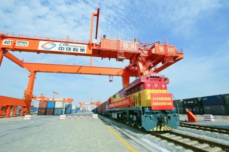 第7000列西部陆海新通道海铁联运班列满载着货物从广西钦州集装箱铁路中心站缓缓驶出;广西钦州自动化集装箱码头完成1.0882万标箱装卸作业,北部湾港集装箱单船作业量首次超过1万标箱……