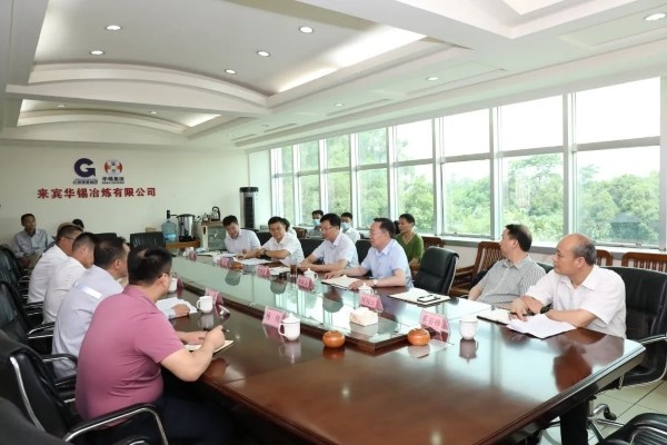 5月30日,来宾市委书记何朝建率队到来宾华锡冶炼有限公司(以下简称“来冶公司”),就企业生产经营和来冶公司锡基新材料高科技产业园项目等进行专题调研,并与广西华锡集团股份有限公司党委书记、董事长蔡勇一行座谈,就项目建设事宜进行深入探讨。