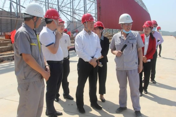 5月18日下午,玉林市副市长范小花、市政府副秘书长蒋银辉、玉林市商务局党组书记、局长李唐明、广西自治区商务厅外资处副处长匡荣韬一行莅临广西华创铜箔项目现场调研指导,了解公司项目建设及投产情况。公司董事长兼总经理周盛夫,公司副总经理兼广西华创常务副总经理王鸿国热情接待。