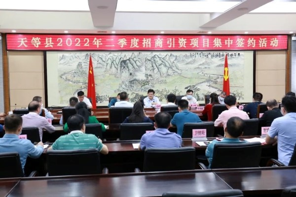 5月13日,天等县举行2022年二季度招商引资项目集中签约活动,签约项目共6个,总投资共计24.93亿元,涉及新能源、再生资源产业、锰产业、养殖等产业领域。