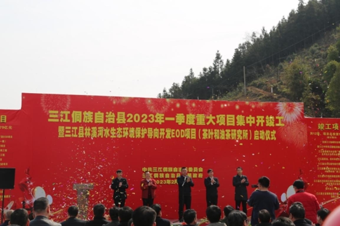 2月16日,广西柳州市三江侗族自治县举行2023年一季度重大项目开竣工暨三江具林溪河水生态环境保护导向开发EOD项目 (茶叶和油茶研究所)启动仪式,这是三江县奋力冲刺一季度“开门红”的重要举措,更是深入贯彻落实广西壮族自治区“坚定信心稳增长、更好统筹开新局”的决策部署的坚定行动。