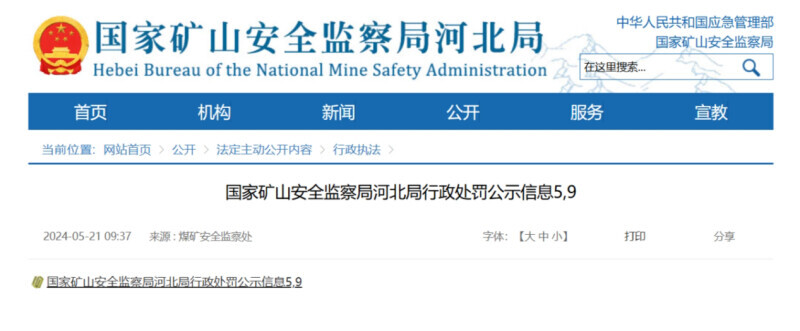 2024年3月31日,中国青年网财经曾报道,冀中能源所属葛泉矿发生安全事故至2名被困人员死亡,在3月份,国家矿山安全监察局河北局于28日、29日,发布两份公告,分别对邢台矿、羊东矿进行了监察执法检查,发现两个矿均存在重大事故隐患,对两个矿作出停产整顿2日的行政处罚决定。