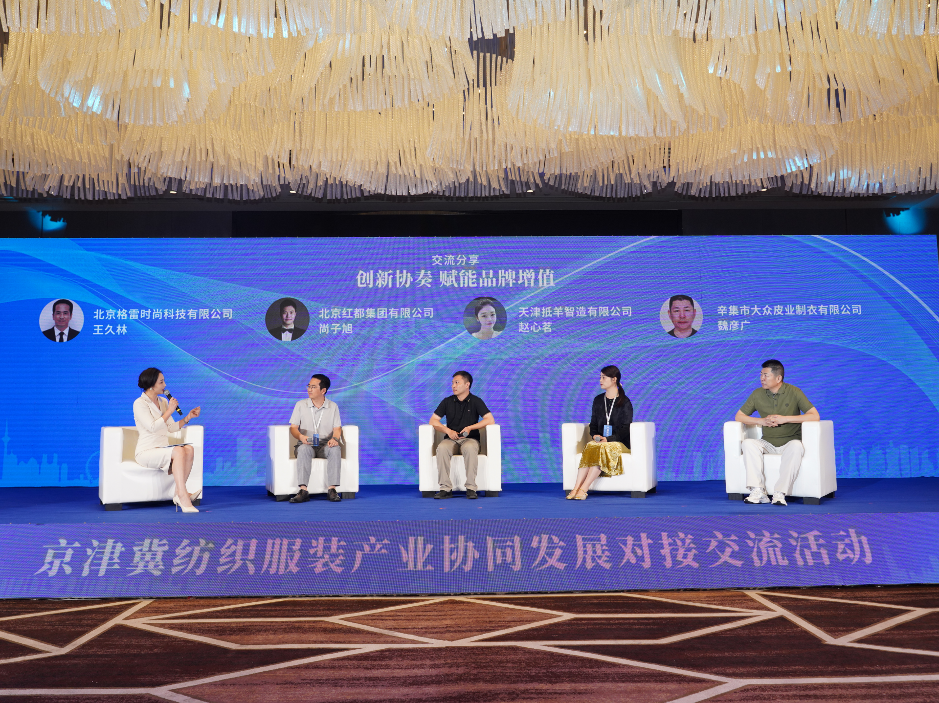 在分享交流环节,北京格雷时尚、北京红都、天津抵羊智造、河北大众皮业等优秀企业代表共同就“创新协奏,赋能品牌增值”主题,各自分享企业在创意设计、品牌营销、智能制造、市场开拓等方面的经验,探讨在京津冀协同发展背景下如何提升品牌价值和影响力的做法和心得。随后,部分河北省企业代表现场发布了供需合作信息,京津冀三地行业协会发起《京津冀纺织服装行业协会联合倡议》,将合力协同创新、协同互济、协同提质,共谋发展大计、共享高效资源、共创示范生态。