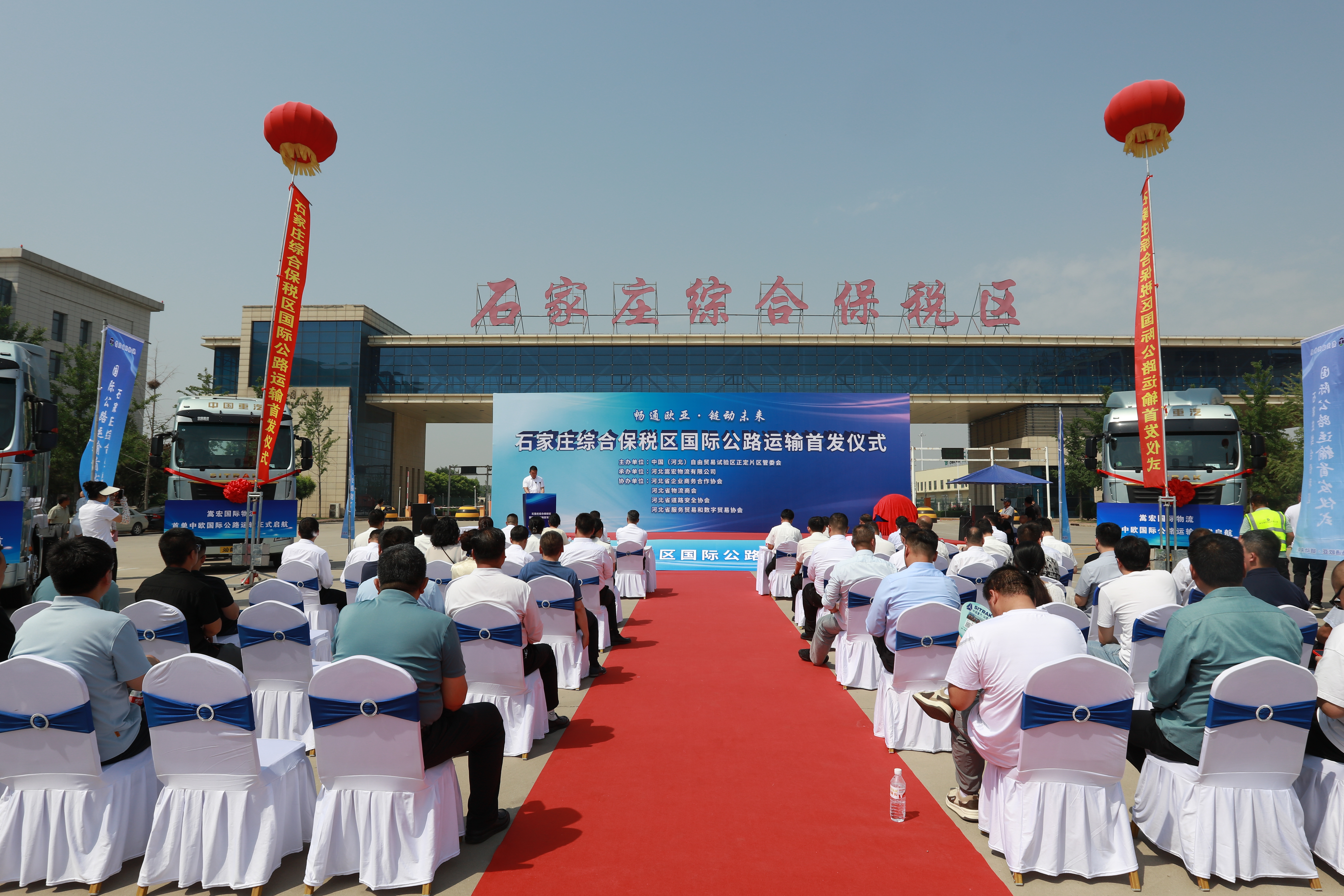 5月20日,石家庄综合保税区举行国际公路运输首发仪式。此次活动由中国(河北)自由贸易试验区正定片区管委会(以下简称“正定片区管委会”)主办,河北省企业商务合作协会、河北省物流商会、河北省道路安全协会、河北省服务贸易和数字贸易协会协办,河北嵩宏物流有限公司承办。正定海关关长兰文杰、河北省交通运输厅综合运输处副处长李峰、正定片区管委会副主任宫爱龙出席活动。