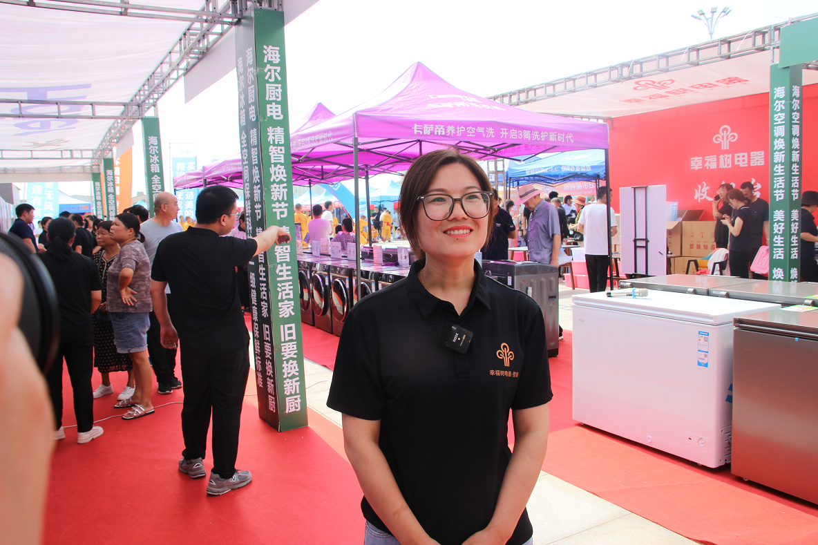 登封市幸福树电器中岳大街店店长贾会娟:我们这次邀约了将近1000户将近2000人来参加活动,现场老百姓参与的积极性也非常高,我们早上7点就开始忙到现在。