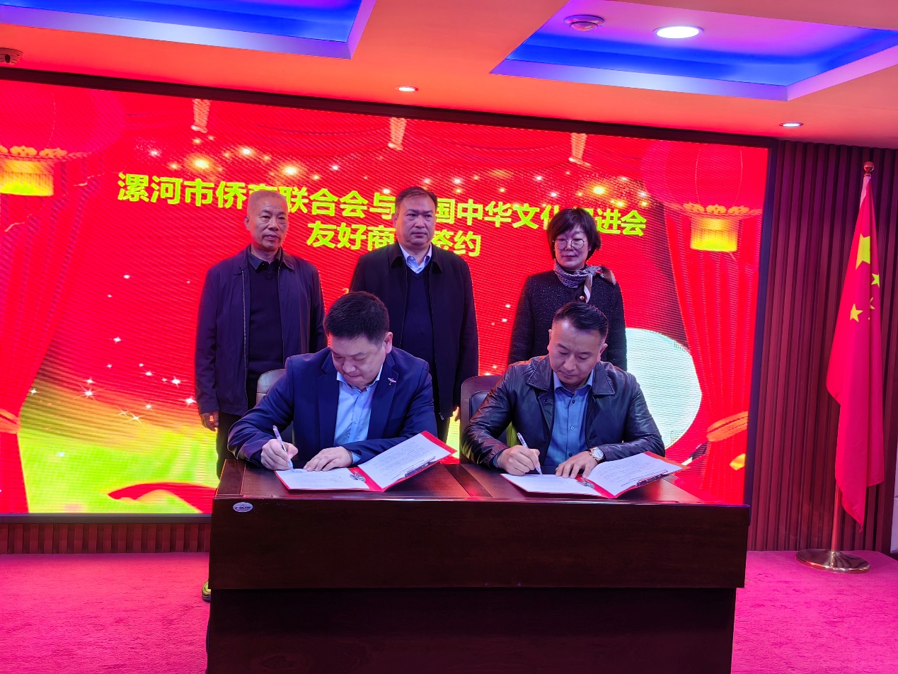 会上,举行了漯河市侨商联合会与德国中华文化促进会的友好商会签约仪式,漯河食品工程职业大学、漯河市电子商务中等专业学校与德国开元集团的战略合作协议签约仪式。