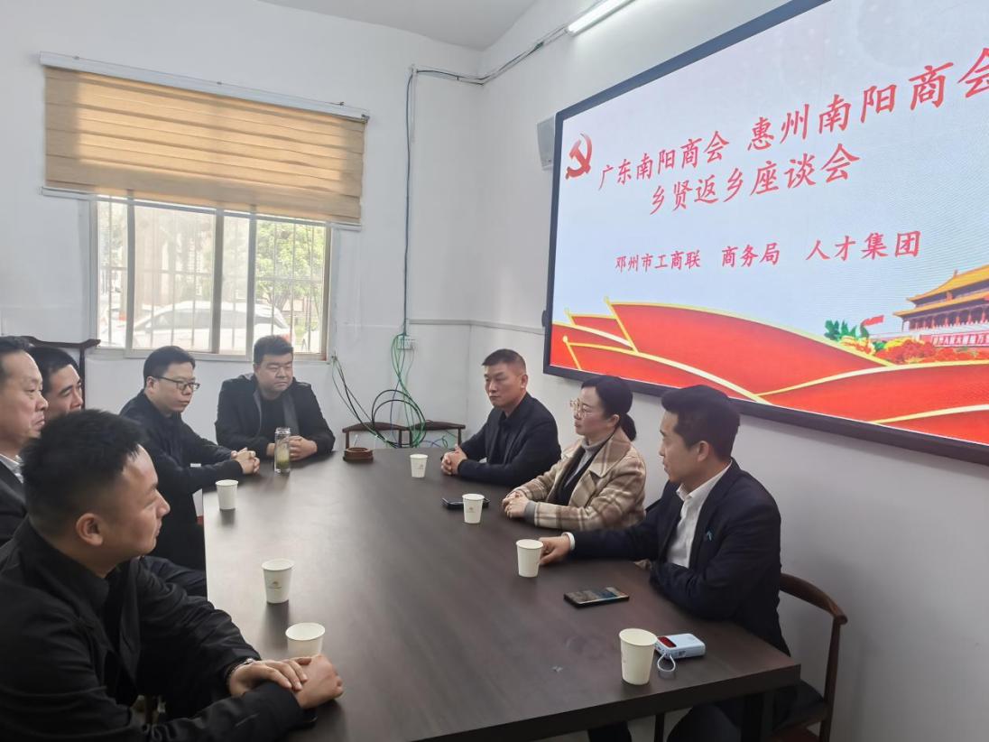 为进一步凝聚乡贤力量,推动河南省邓州市经济社会高质量发展,近日,邓州市工商联以“迎老乡回故乡建家乡”为主题,开展商会乡贤返乡“共叙乡情共话发展”座谈活动。广东南阳商会秘书长韩义,惠州南阳商会秘书长胡培豹、党支部书记葛双红,北京邓州商会秘书长李荣新,郑州邓州商会执行秘书长周粉青等商会返乡乡贤以及邓州市工商联、商务局、人才集团相关单位负责人参加座谈活动。
