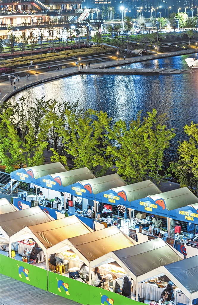 夜幕降临,龙湖金融岛灯火璀璨,消费氛围愈加浓厚。张文举 摄