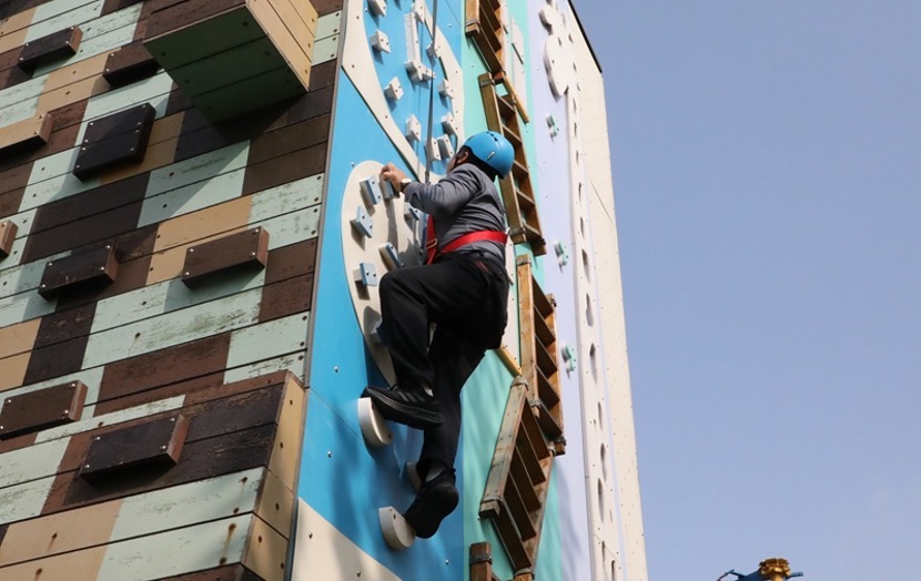 初冬的阳光洒满校园,记者们漫步于这座坐落于沙澧河风景区、累计投资近3亿元、占地135.1亩的现代化实践园区,视野豁然开朗,移步异景,室内实践、室外训练、综合劳动、生活服务四大功能区布局科学合理,可同时容纳1200名学生开展活动并集中食宿。采风团依次走访了设施齐备的室外训练场、其乐融融的美食课堂、温馨舒适的学生公寓、装备先进的公共安全教育中心等,并饶有兴致地体验了刺激有趣的攀岩项目。