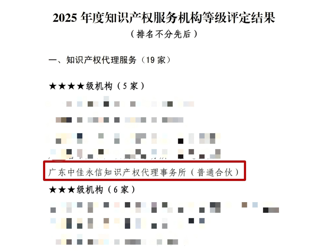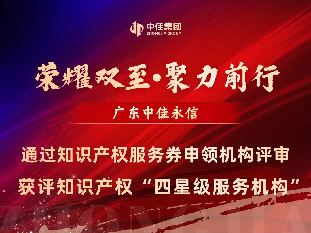 近日,中佳集团旗下广东中佳永信知识产权代理事务所(普通合伙)接连收获两项重要资质:成功通过知识产权服务券申领机构评审,并荣获年度知识产权“四星级服务机构”称号。标志着中佳集团在政策对接能力与专业服务水平上实现双重突破,综合实力再获权威认可。