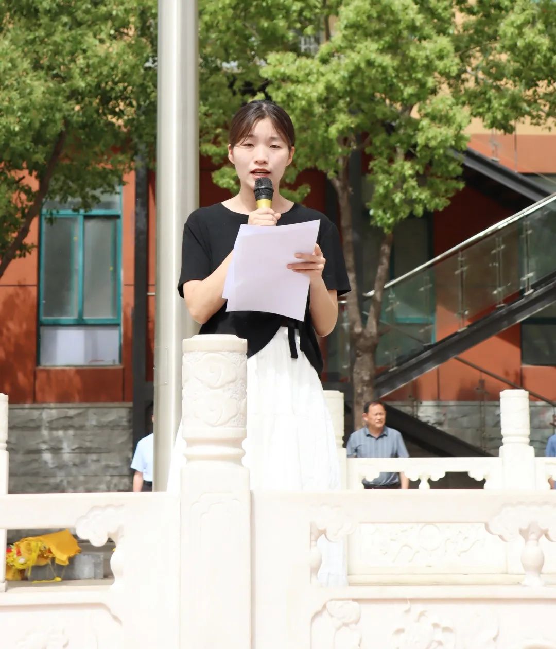 对话百年薪火相传。七年级李闪闪主任在国旗下讲话中,带领师生穿越百年时空,重温1919年“五四运动”中青年先锋的爱国壮举。通过“天问探火”“嫦娥取壤”等新时代科技成就的生动案例,阐释中国共产党领导下取得的辉煌成就。她号召全体同学以周恩来“为中华之崛起而读书”的志向自勉,提出“树立理想、勤学善思、勇担责任”三大行动纲领,强调“要在书本中汲取智慧,在实践中锤炼品格,让青春在全面建设社会主义现代化国家的火热实践中绽放绚丽之花”。