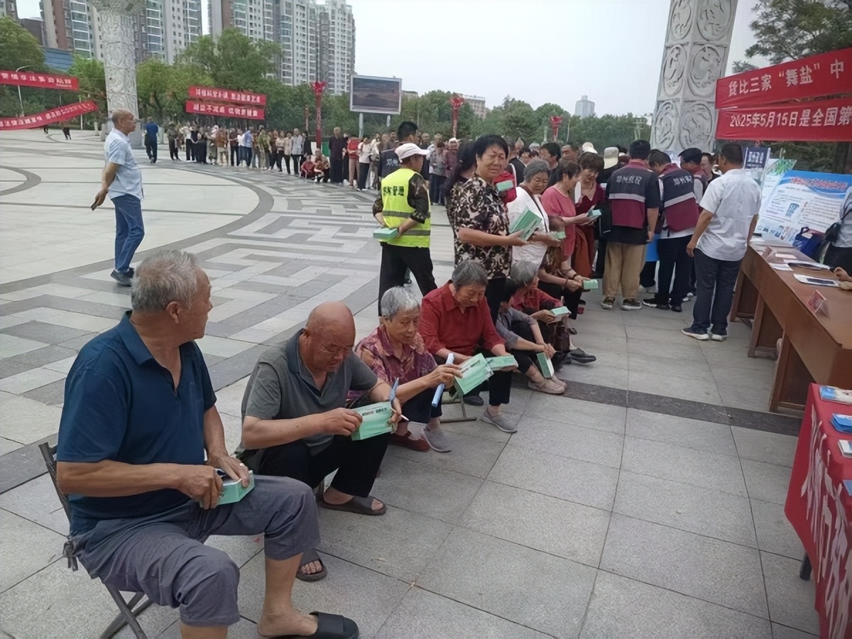 当天累计发放《科学用盐指南》《低钠盐健康手册》等宣传资料3000余份,免费向市民发放中盐舞阳低钠盐、碘盐等产品500余袋。