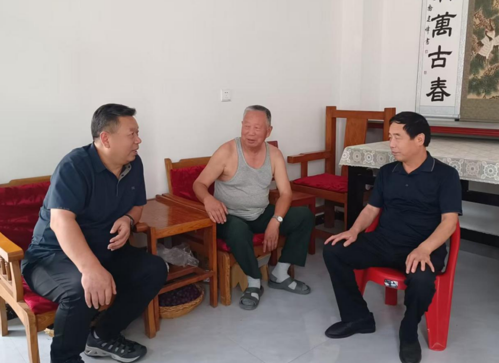 在离休干部胡君道家中,带着党组织的关怀和问候,总公司领导与他促膝交谈,叙家常、谈往昔,详细了解其身体状况和家庭生活情况,希望他保重身体、幸福生活。