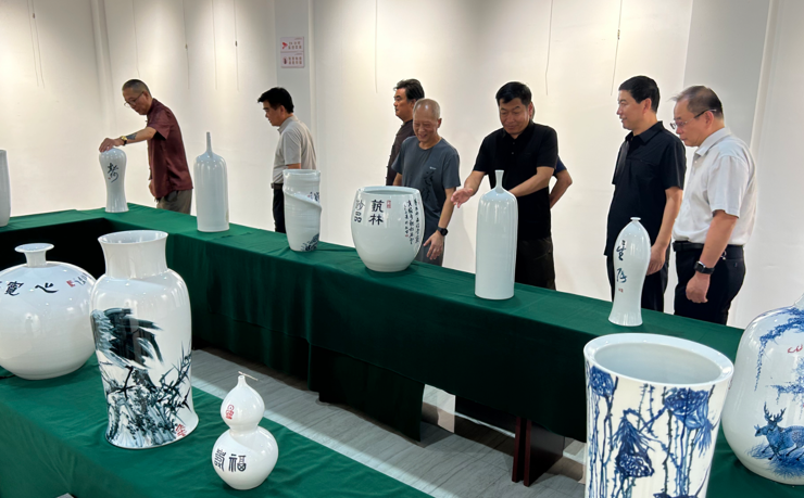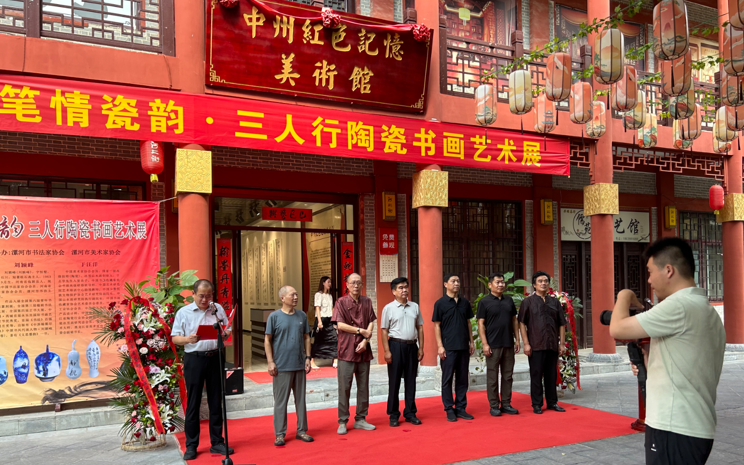 8月23日上午,由河南河上街集团主办,漯河市书法家协会、漯河市美术家协会协办的“笔情瓷韵”——三人行陶瓷书画艺术展,在河南省漯河市中州红色记忆美术馆举办。漯河市政协原副主席田冠亭、中国工艺美术大师马国庆、中国高级陶瓷艺师于汪洋、漯河市书协主席刘颖峰、漯河市美协主席王博以及来自全市书画爱好者近100多人出席活动。