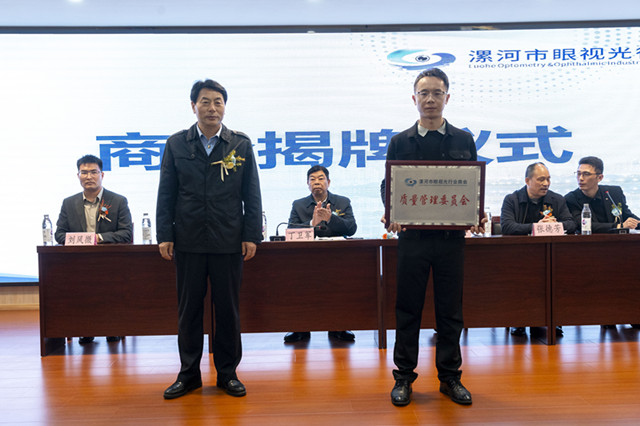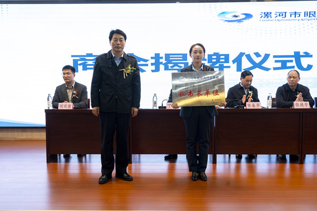 现场举行庄重的揭牌授牌仪式。丁卫军与刘风微共同为商会党支部揭牌,宋春华与陈灿伟共同为商会揭牌,标志着漯河市眼视光行业商会开启了一段新征程、新希望。与会领导为会长单位、副会长单位、秘书长单位、监事长单位颁发牌匾,并为漯河市眼科仪器强制检测服务站、漯河市质量管理委员会、漯河市专业技术委员会授牌,为行业规范化、专业化发展筑牢支撑。