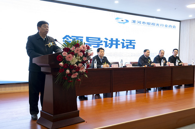 张德芳代表登记管理部门致辞,对商会成立表示诚挚祝福,强调商会要严格依法依规开展活动,健全内部治理机制,充分发挥桥梁纽带作用,助力漯河眼视光行业行稳致远。