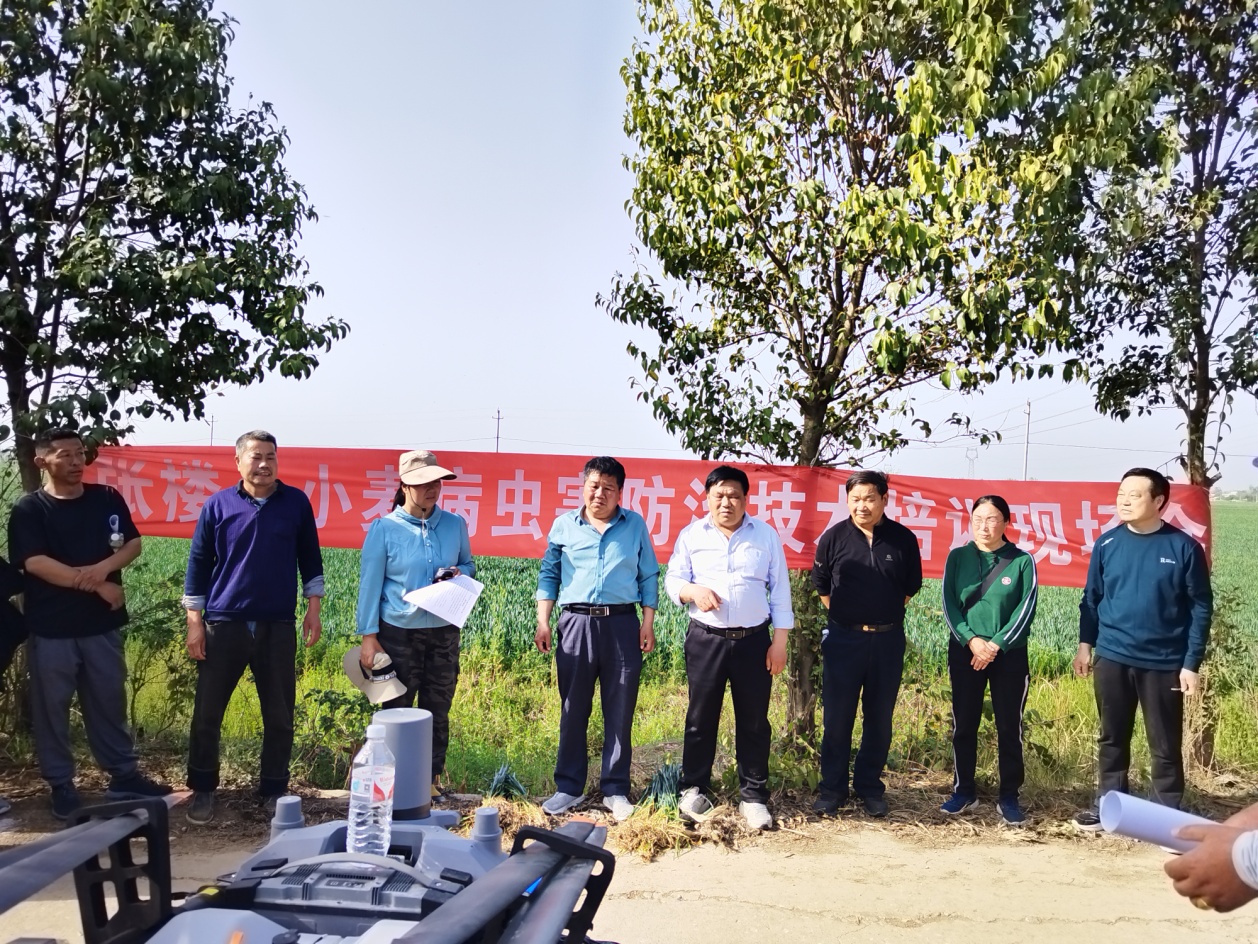4月10日,河南省邓州市张楼乡在文营村举办小麦病虫害防治技术培训现场会